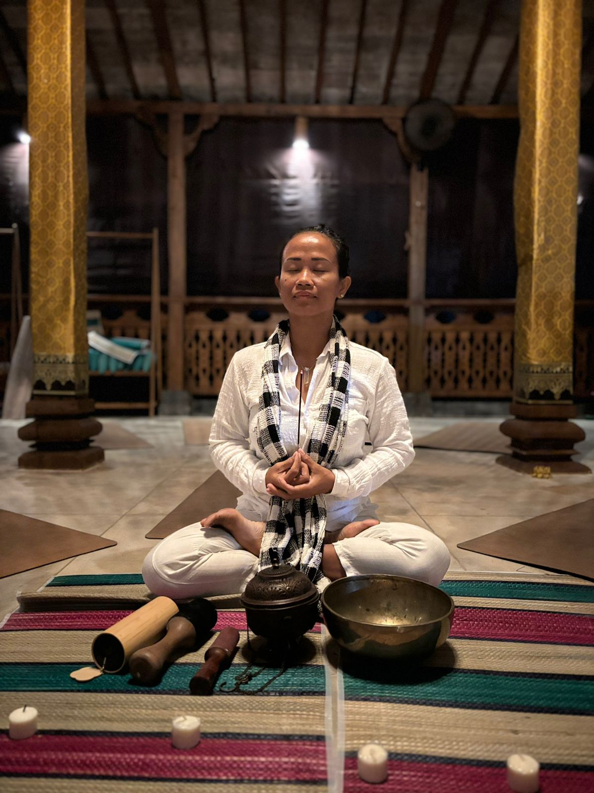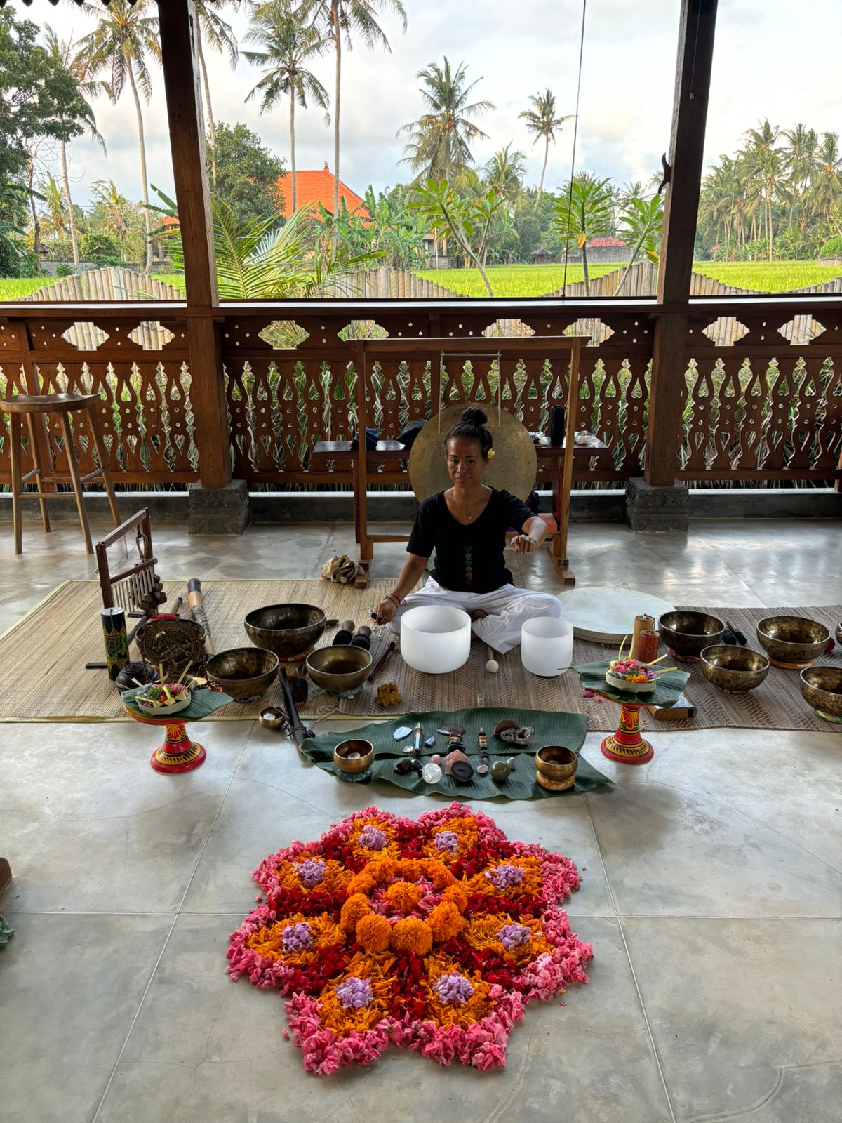 The session also includes a Balinese blessing ceremony, offering spiritual cleansing and a renewed sense of grounding and protection.